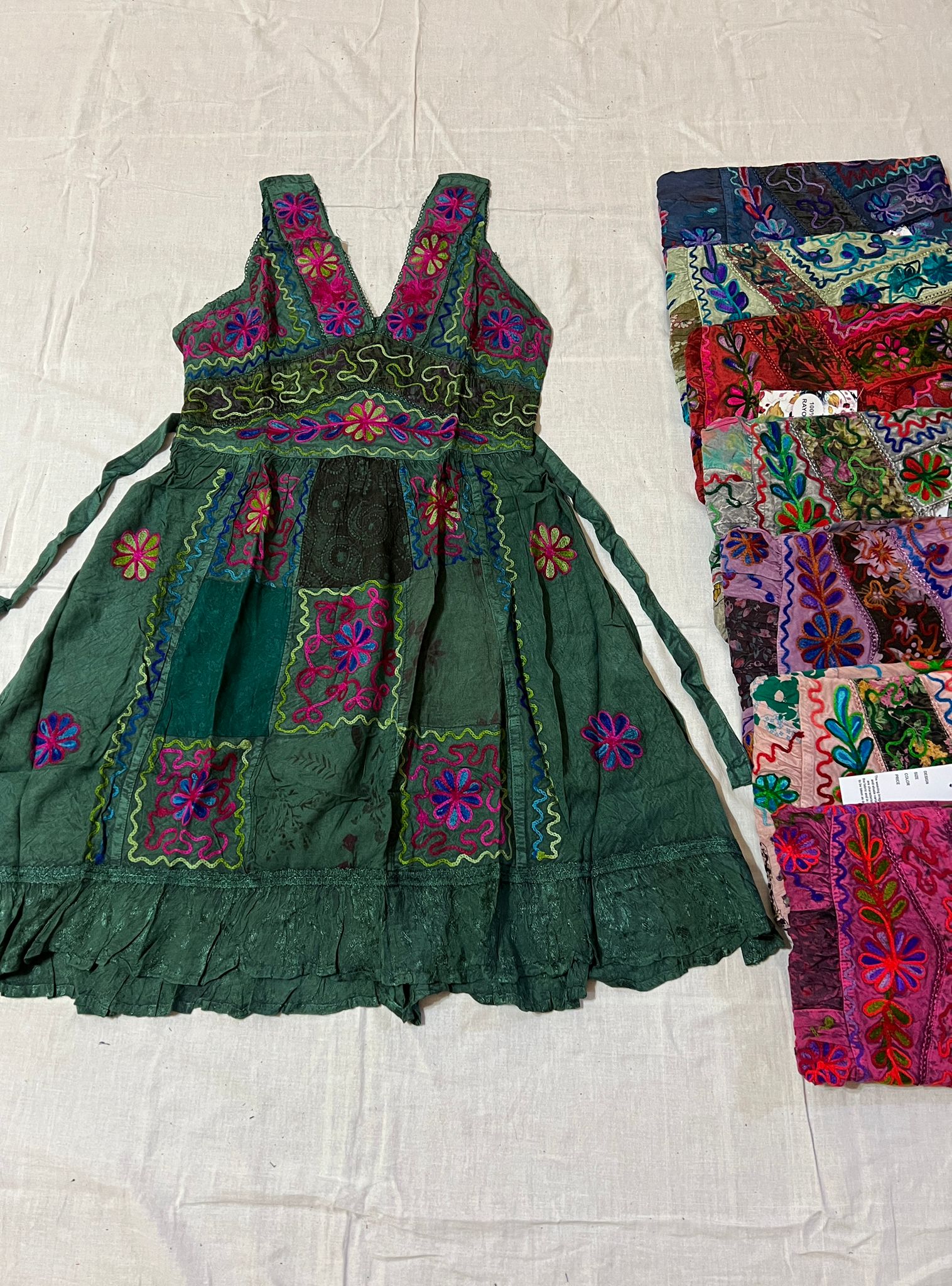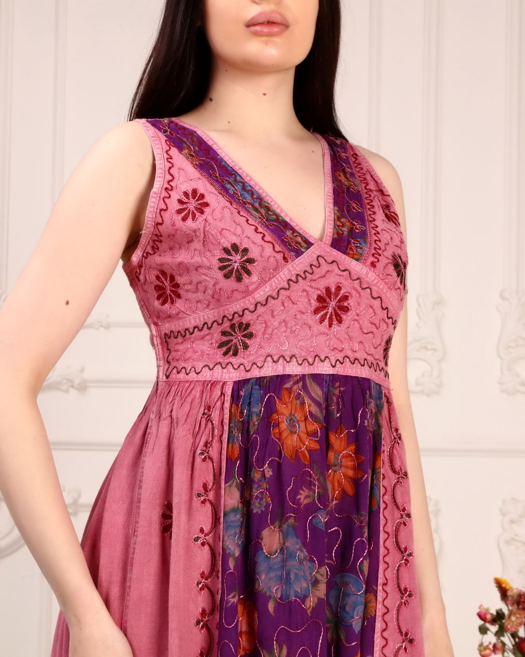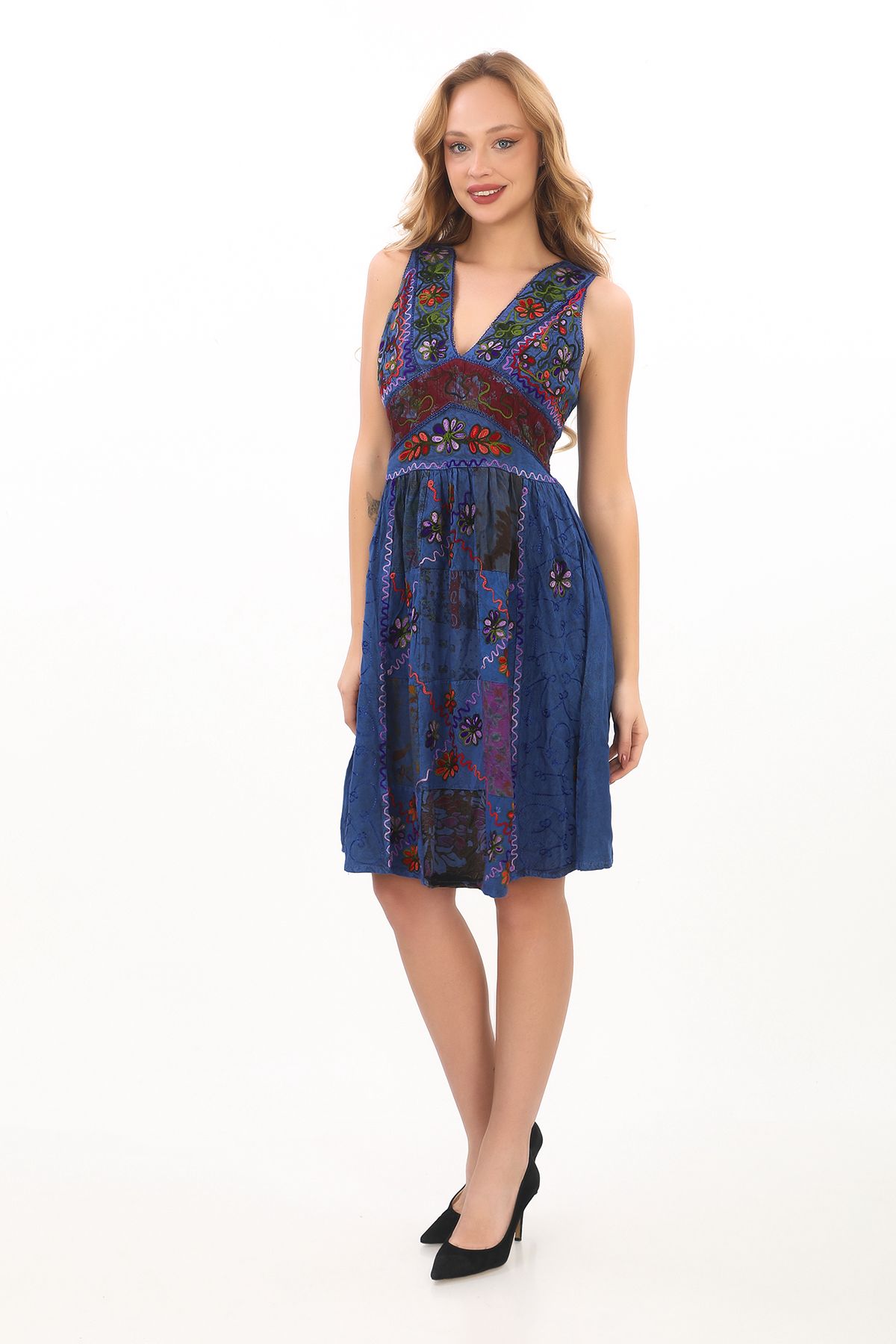 Bu elbise, yüksek kaliteli pamuklu dokuma olarak üretilmiştir. Nefes alabilir yapısı sayesinde yaz aylarında serin kalmanızı sağlar. Ayrıca, elbisenin kumaşı dayanıklı olup yıkandıktan sonra bile canlı renklerini korur. Dikkat çekici desenler ve renkler, ustalıkla işlenmiş ve her bir detayda kaliteyi hissetmenizi sağlar.
