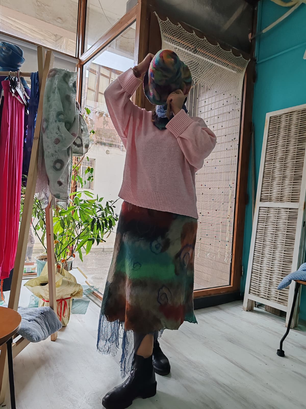 Keçe tasarım etek, üstün kaliteye sahip olan doğal ve organik keçe kumaşından üretilmektedir. Bu sayede cilde zarar vermez ve rahatsızlık hissi yaratmaz.