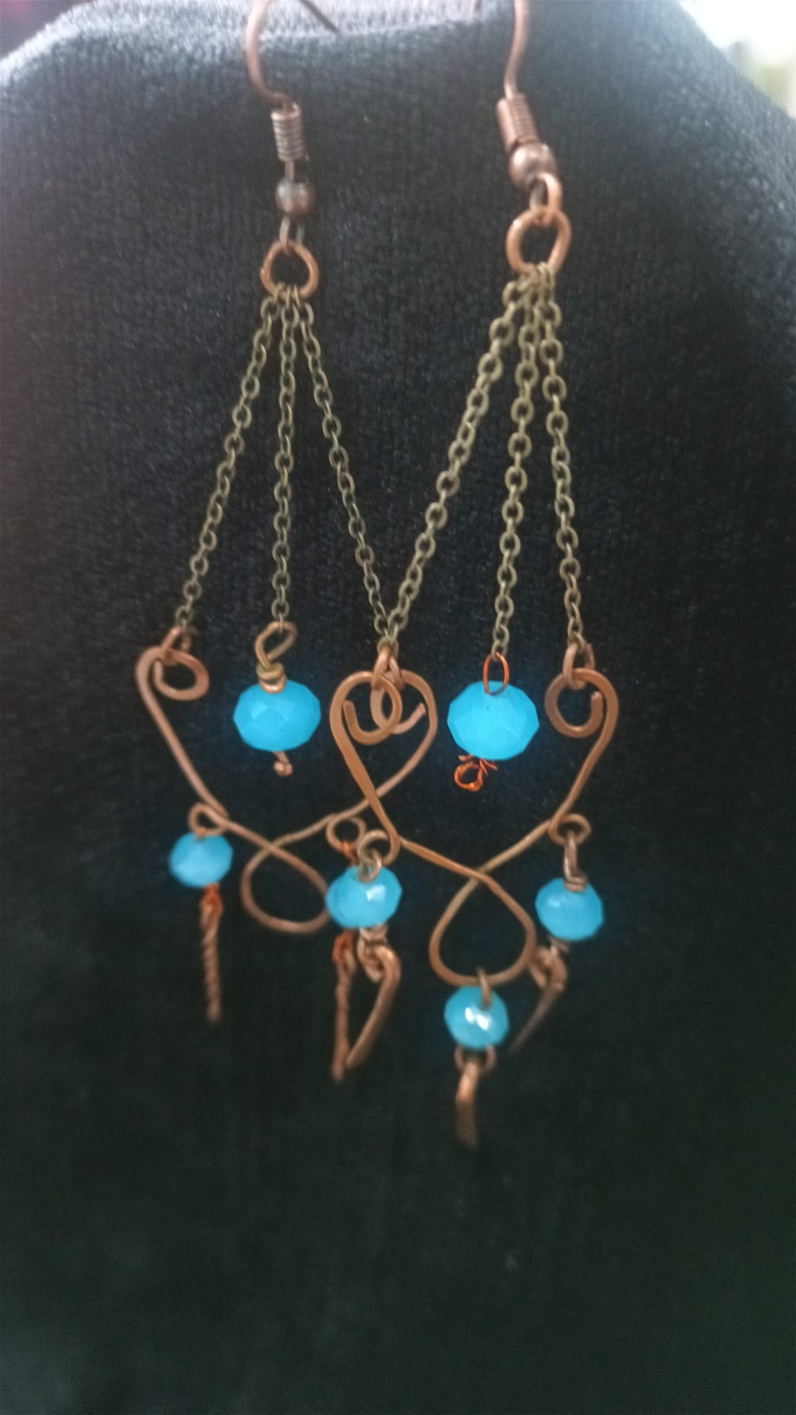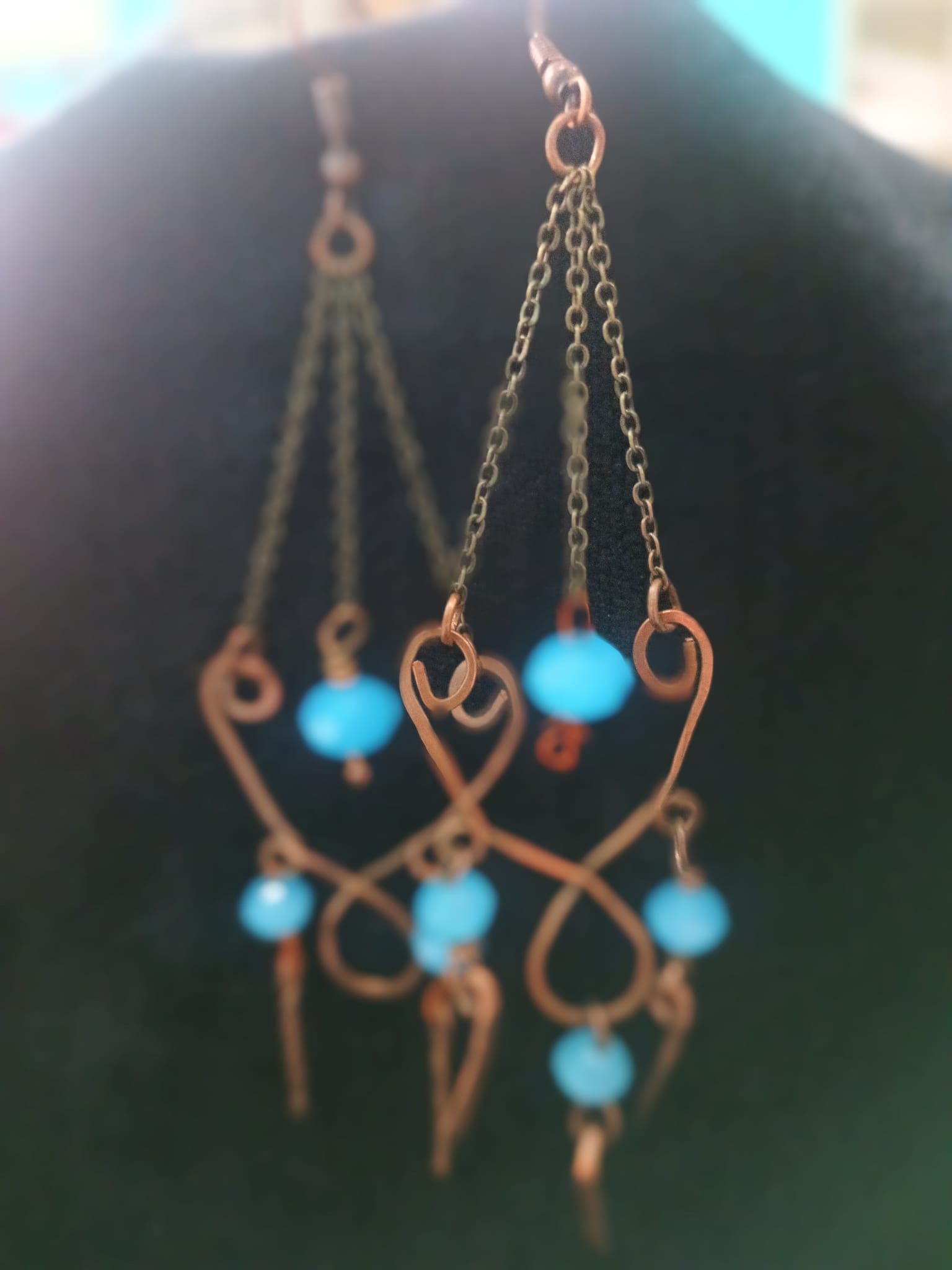 MAVİ BONCUKLU BAKIR ZİNCİRLİ KÜPE