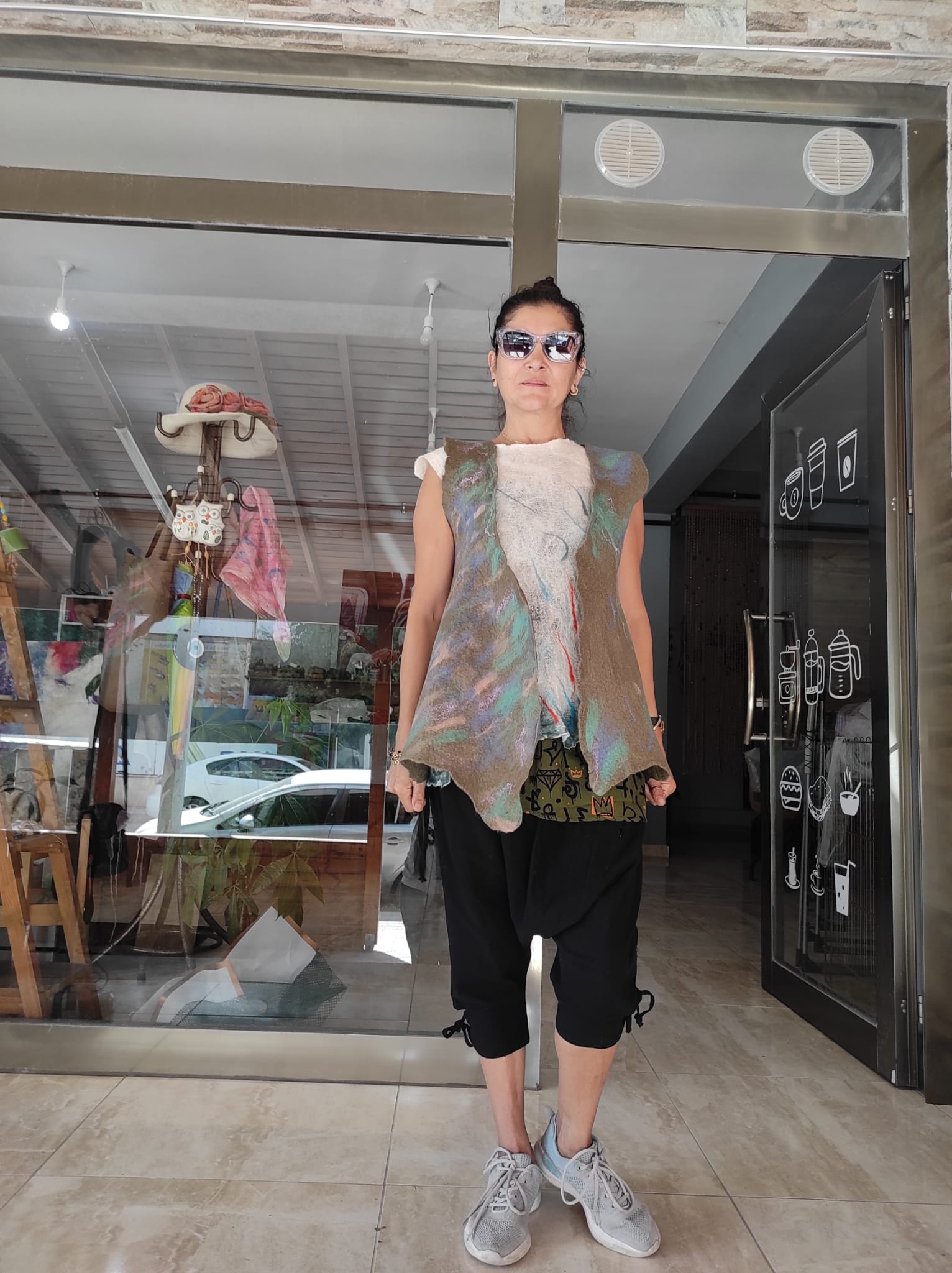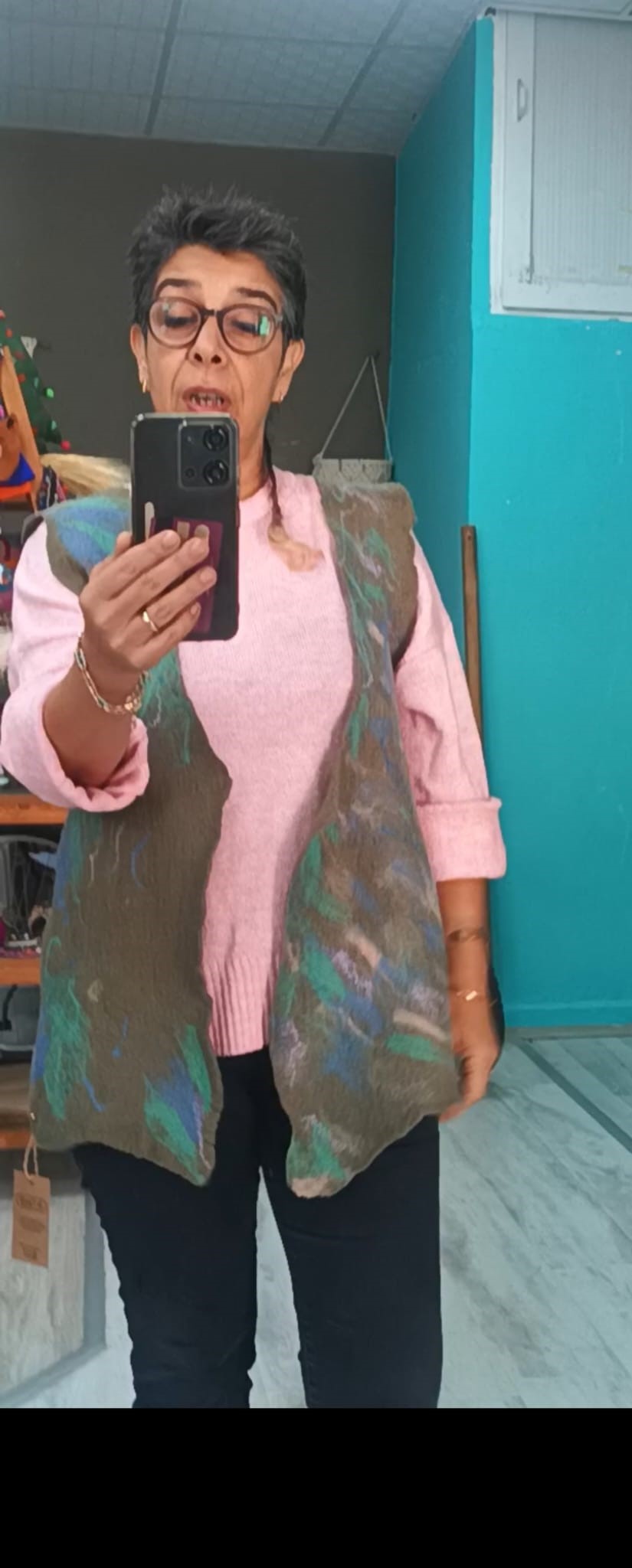 Tasarım Keçe Yelek, modern ve şık tasarımıyla dikkat çeken bir üründür. Bu özel yelek, yüksek kalite ve dayanıklılık özellikleriyle üretilmiştir. Özenle seçilmiş malzemelerden üretilen Tasarım Keçe Yelek, hem sıcak tutma özelliği hem de şık tasarımıyla her mevsimde tercih edebileceğiniz bir üründür. Geleneksel ıslak keçe yöntemiyle modern tasarım örneğidir. Yüzde yüz ve incecik, ipek gibi yündür.